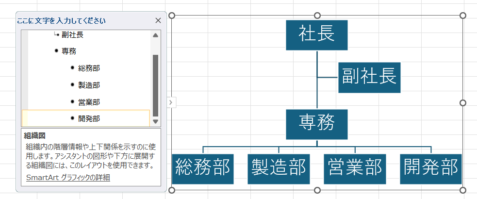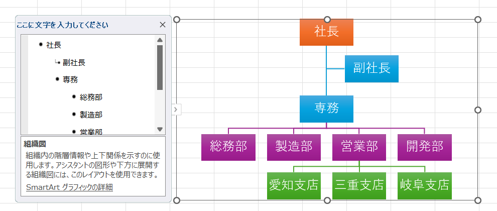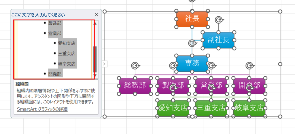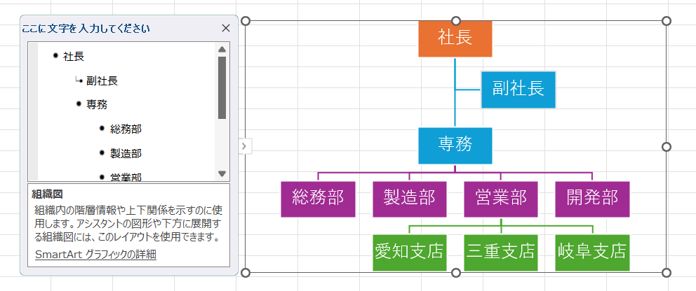 スマートアートで組織図を作成