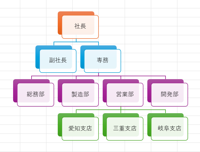 すると、この様な形で図形が追加されます。専務からまっすぐ下にいってないことが分かります。