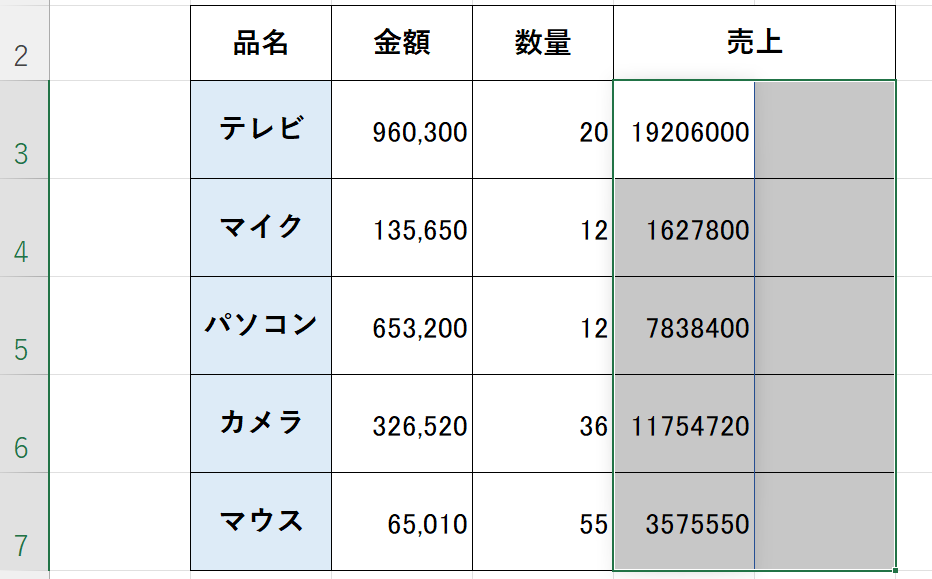 数式を入力したセルをクリックして選択すると、青い点線で囲まれた範囲が表示されます。