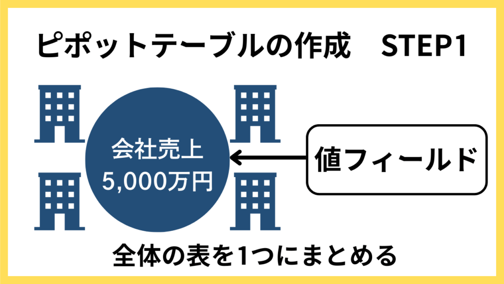 「全社売上5000万円という一つの塊を、支店別・担当者別に段階的に分類していく」これがピボットテーブルの本質です。営業会社の組織構造と全く同じ考え方なのです。