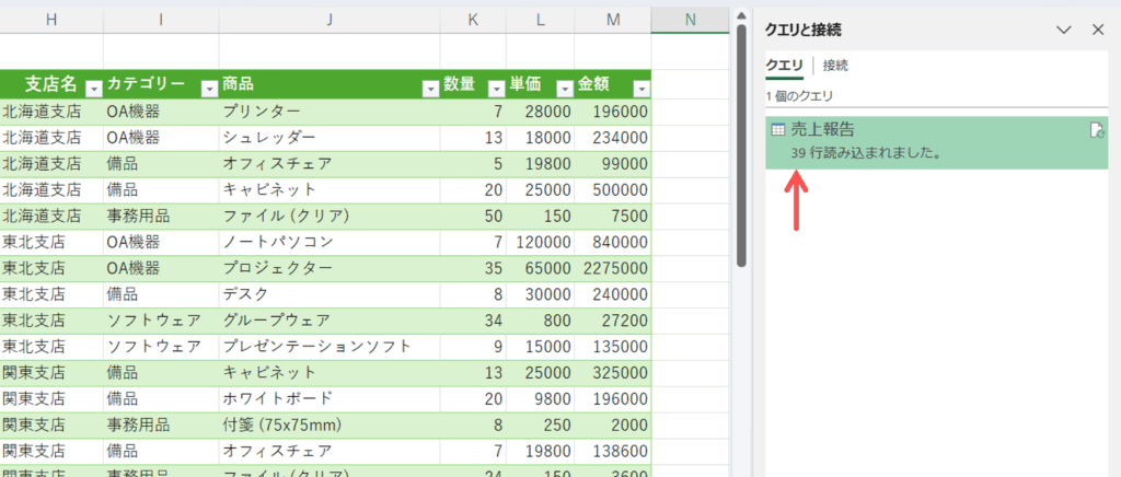 これで、加工されたデータがテーブルとしてワークシートに読み込まれます。
