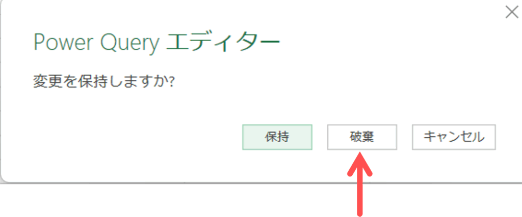 これで元データがテーブルに変わっていないことが確認できます。PowerQueryには取り込めていますが、元データはテーブルに変換されない状態を保てました。又、powerQueryエディタを起動します。