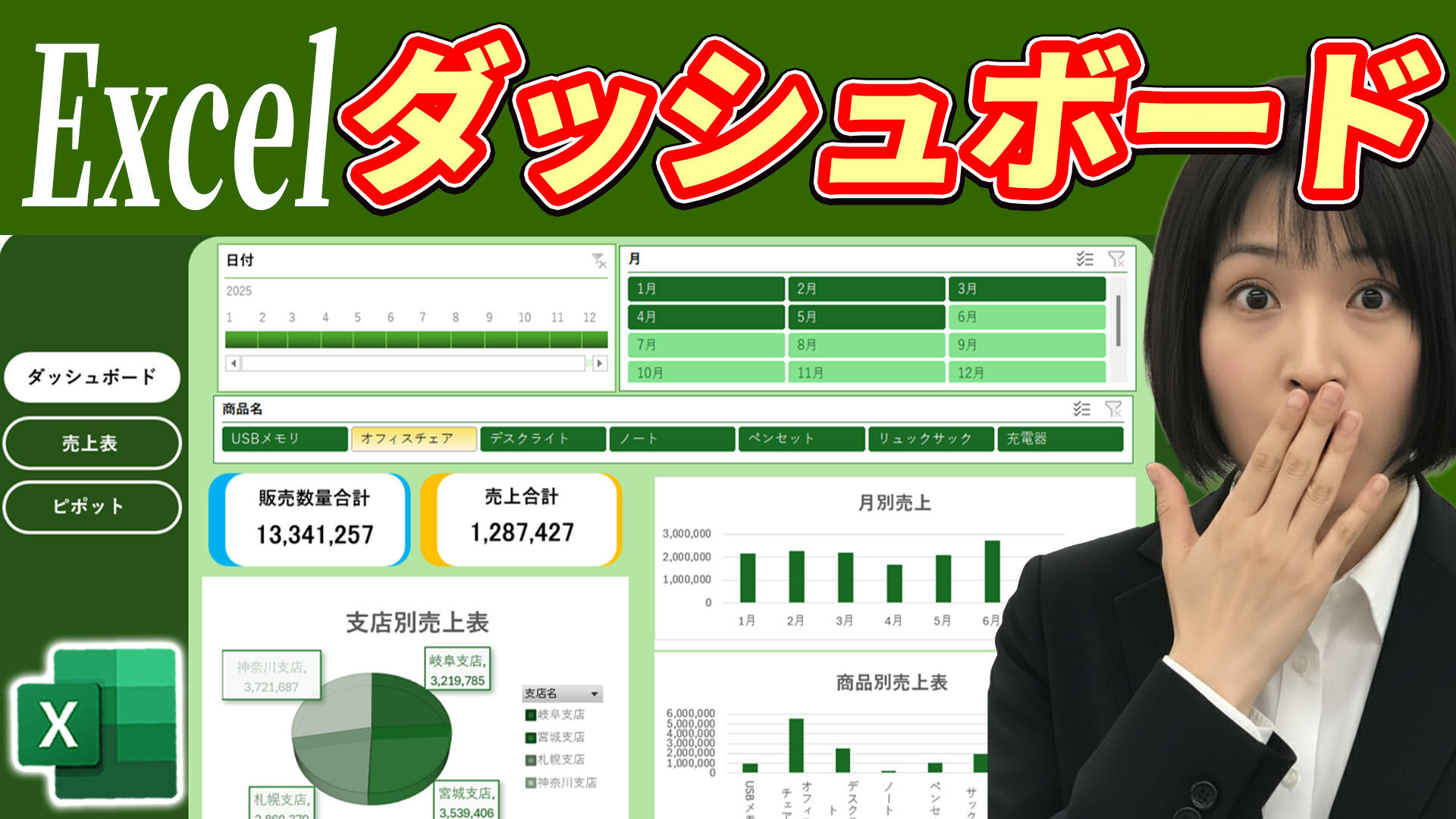 「『手順が長いな……』と感じるかもしれませんが、ご安心ください。一つひとつの作業は、コピーや貼り付け、関数の入力といったExcelの基本操作の積み重ねにすぎません。 このダッシュボード作成の流れを一度マスターしてしまえば、売上管理はもちろん、在庫管理やアンケート集計など、あらゆるビジネスデータの分析・可視化に応用できる『一生モノ』のスキルになります