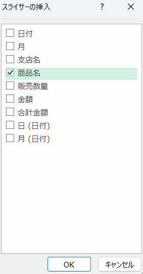 すると【スライサーの挿入】ダイアルボックスが表示されます。
