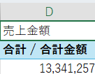 【D1】セルに【売上金額】と入力して分かる様にしておきます。