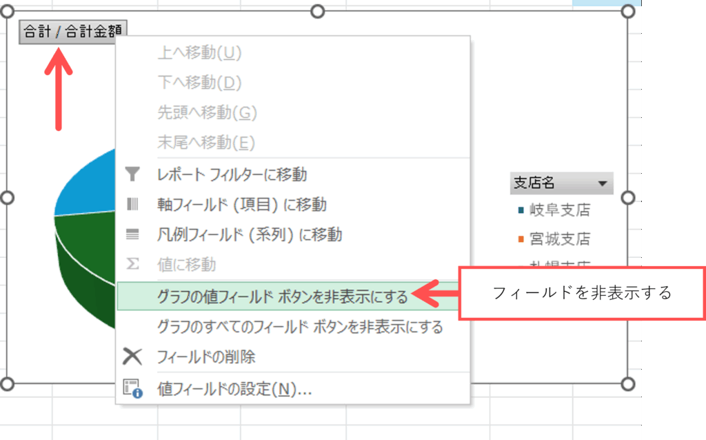 【合計/合計金額】を右クリックして【フィールドを非表示にする】をクリックします。