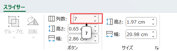 商品が7つあるので、スレイサーの【列数】を【7】にします。