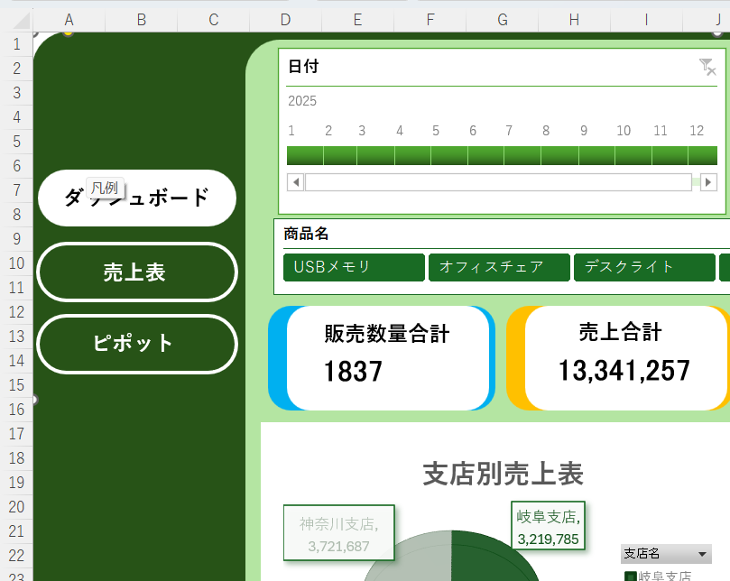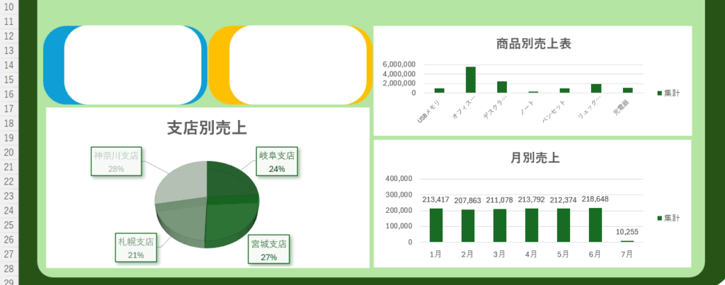 最初に、この様な、ダッシュボードの土台となるExcelファイルを用意します。