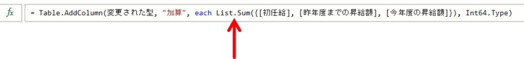 実は、3つ以上の列を選択して【列の追加】→【標準】→【加算】を行うと、Power Queryの挙動が自動的に変わります。