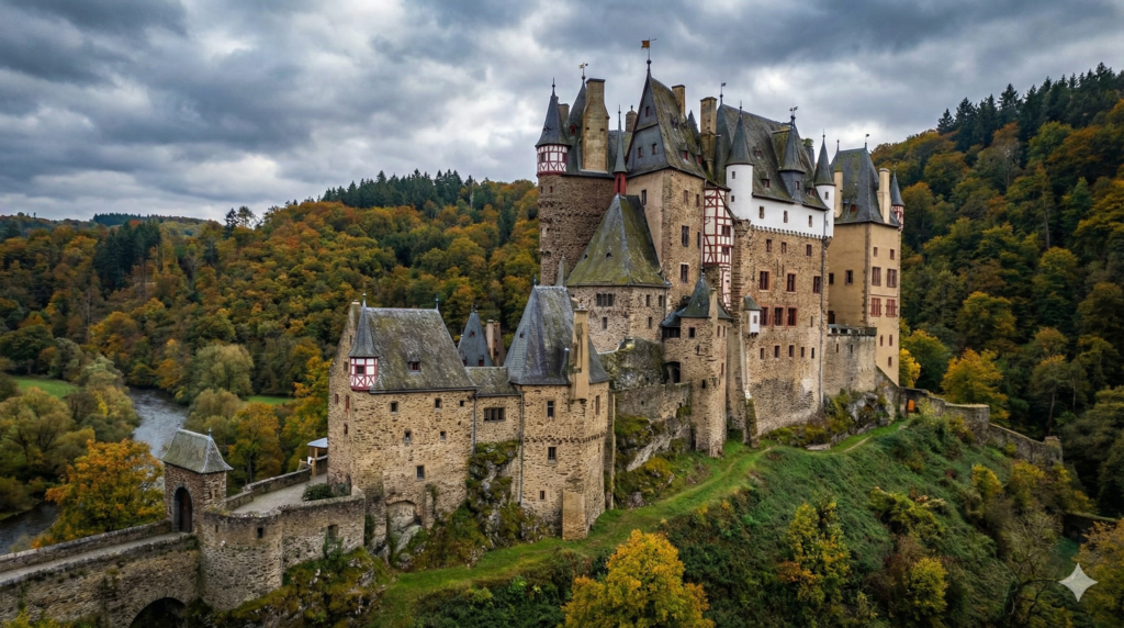 ヨーロッパの城で、リアルな4Kの解像度で、細部まで精密に描写された全体像