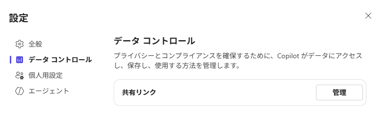 - プライバシー設定: AIによるデータ利用の許可/拒否など、セキュリティポリシーに関わる設定が含まれます。