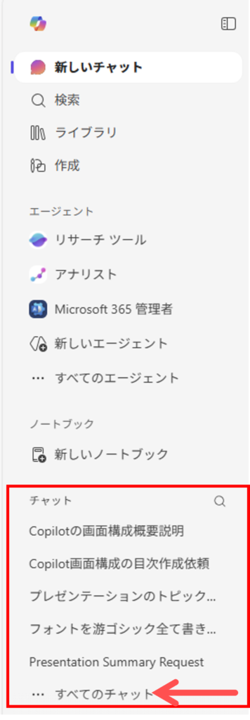 - 履歴の管理: 自動的に会話の内容からタイトルが付けられますが、後から自分でわかりやすい名前に変更したり、不要なものを削除して整理することも可能です