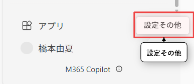 右上の【三点ボタン】をクリックして【設定】をクリックして選択します。