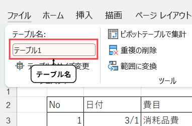 テーブルを作成したら【テーブル名】に自分で分かりやすい名前を入力します。