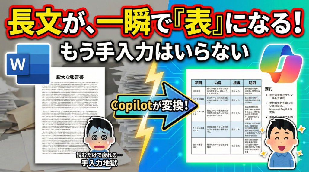 Wordの文章作成はCopilotにお任せ!一瞬で要約&表作成するテクニック